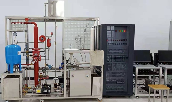 消防給水系統(tǒng)主要有給水箱、噴淋泵、穩(wěn)壓罐、濕式報(bào)警閥、壓力開(kāi)關(guān)、水流指示器、消防給水管道、閉式噴淋頭等組成。管路采用鍍鋅管進(jìn)行設(shè)計(jì),可進(jìn)行鍍鋅管的切割、套絲、安裝和通水試驗(yàn)操作,通過(guò)控制系統(tǒng)可實(shí)現(xiàn)噴淋滅火功能。