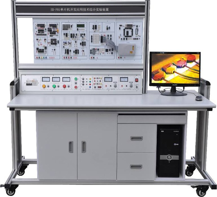 單片機(jī)開(kāi)發(fā)應(yīng)用技術(shù)綜合實(shí)驗(yàn)裝置由控制屏、實(shí)驗(yàn)掛箱、實(shí)驗(yàn)桌組成,通過(guò)本實(shí)驗(yàn)臺(tái)可完成單片機(jī)的接口擴(kuò)展、數(shù)據(jù)采集、數(shù)據(jù)顯示、鍵盤(pán)控制、定時(shí)器、打印機(jī)接口等實(shí)驗(yàn),配備有仿真器。