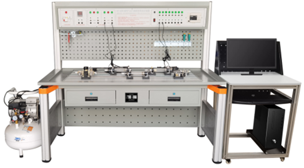 實驗臺由實驗桌、實驗操作區(qū)、網(wǎng)孔工具掛板、靜音氣泵、常用氣動元件、主控機(jī)箱、電腦桌等幾部分組成。