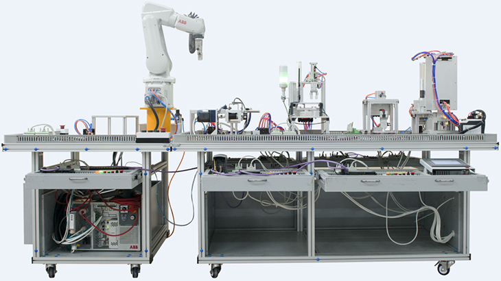 工業(yè)機(jī)器人循環(huán)生產(chǎn)線實(shí)訓(xùn)裝備,工業(yè)機(jī)器人智能生產(chǎn)線實(shí)訓(xùn)系統(tǒng)以工業(yè)化現(xiàn)場真應(yīng)用作為教學(xué)藍(lán)本,采用多種型式、多種規(guī)格、多種應(yīng)用組合成型的工業(yè)應(yīng)用生產(chǎn)線。主要以體現(xiàn)工業(yè)機(jī)器人典型應(yīng)用,讓學(xué)生撐握真實(shí)工業(yè)機(jī)器人現(xiàn)場應(yīng)用方法。通過以工業(yè)現(xiàn)場真實(shí)應(yīng)用案例實(shí)訓(xùn),縮短教學(xué)實(shí)訓(xùn)與工廠崗位應(yīng)用的差距。