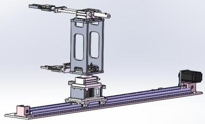 本站的功能是完成向各個(gè)工作單元輸送工件,系統(tǒng)分為雙機(jī)械手單元和直線位移位置精確控制單元兩部分,系統(tǒng)上電后,先執(zhí)行回原點(diǎn)操作,當(dāng)?shù)竭_(dá)原點(diǎn)位置后,若系統(tǒng)啟動(dòng),供料站物料臺(tái)檢測傳感器檢測到有工件時(shí),機(jī)械手整體先提升到位后手爪伸出到位后手爪夾緊,手爪夾緊到位手爪開始縮會(huì)機(jī)械手整體下將到位后,伺服電機(jī)開始工作按設(shè)定好的脈沖量到加工站。加工站到位后機(jī)械手整體提升,提升到位后手爪伸出伸出到位后機(jī)械手整體下降,下降到位后工件已放入加工站物料臺(tái)上,然后手爪松開,松開到位后機(jī)械手回縮,等加工站加工完成后再將工件送到裝配站進(jìn)行大小料裝配,裝配完成后機(jī)械手抓取物料送到分揀站進(jìn)行分揀,這樣雙機(jī)械手的一個(gè)加工運(yùn)動(dòng)過程就完成了。只要料筒不缺料會(huì)持續(xù)以上過程。當(dāng)料筒出現(xiàn)缺料后,機(jī)器人會(huì)搬運(yùn)過來物料,機(jī)械手會(huì)運(yùn)行到取料位置抓取機(jī)器人上的小料,然后放入小料筒中,然后返回原點(diǎn),當(dāng)機(jī)器人再次搬運(yùn)過來物料,機(jī)械手會(huì)運(yùn)行到取料位置抓取機(jī)器人上的大料,然后放入大料筒中,這樣一個(gè)物料的拆分過程就完成了,直到把碼垛料臺(tái)上的物料全部拆分完成后為止。