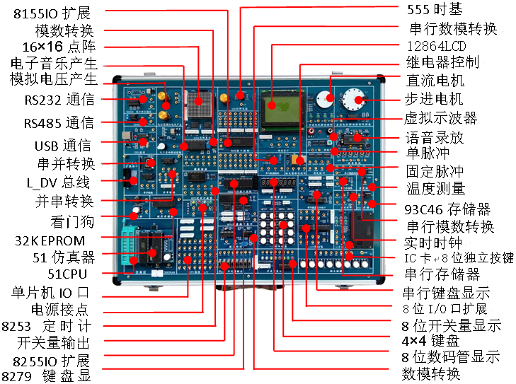 單片機(jī)技術(shù)實(shí)訓(xùn)設(shè)備,單片機(jī)原理與應(yīng)用實(shí)驗(yàn)裝置、單片機(jī)實(shí)訓(xùn)室設(shè)備建立的初衷是為加強(qiáng)學(xué)生的實(shí)踐動手能力,培養(yǎng)既能編寫程序又能設(shè)計(jì)電路,既能設(shè)計(jì)又會維護(hù)的電子設(shè)計(jì)技能人才。單片機(jī)技術(shù)實(shí)訓(xùn)設(shè)備,單片機(jī)原理與應(yīng)用實(shí)驗(yàn)裝置承擔(dān)電子信息工程學(xué)院電子信息工程技術(shù)專業(yè)、應(yīng)用電子技術(shù)專業(yè)、現(xiàn)代移動通信技術(shù)專業(yè)、物聯(lián)網(wǎng)技術(shù)專業(yè)的相關(guān)課程的實(shí)驗(yàn)、實(shí)訓(xùn)教學(xué)。