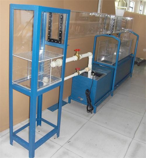 主要配置:實(shí)驗(yàn)工作槽,三角量水堰、回水蓄水槽、供水段穩(wěn)水頭部、多種實(shí)驗(yàn)?zāi)P、測(cè)量?jī)x器、供水泵、流量調(diào)節(jié)裝置等組成,空間三疊層緊縮布置。