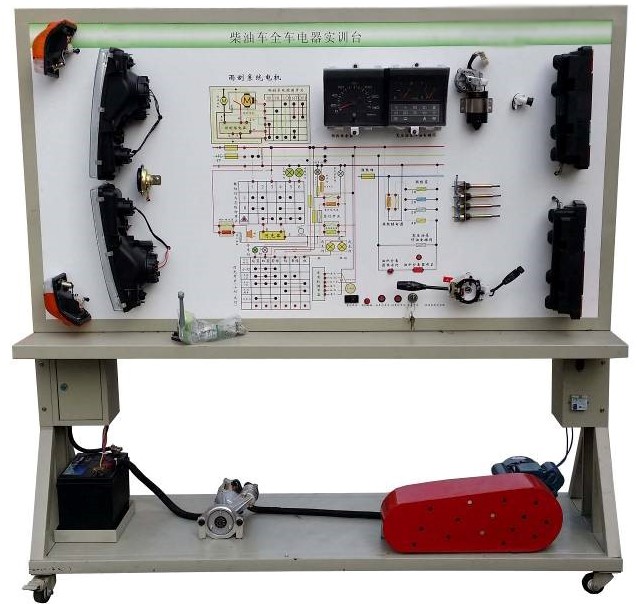 全車電路板試教板教學(xué)設(shè)備采用 全新東風(fēng)牽引車EQ2102 柴油機整車電器實物為基礎(chǔ),充分展示汽車儀表系統(tǒng)、燈光系統(tǒng)、雨刮系統(tǒng)、喇叭系統(tǒng)、發(fā)動機電器系統(tǒng)、起動系統(tǒng)和充電系統(tǒng)等汽車電器各系統(tǒng)的組成結(jié)構(gòu)和工作過程。