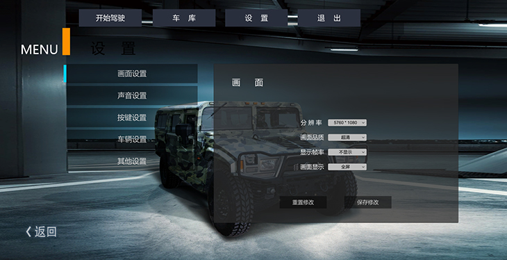7.2、汽車設(shè)置界面:調(diào)整車輛各項(xiàng)動力學(xué)參數(shù)、車輛后視鏡及視角調(diào)整。